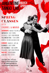 Group classes for all levels as well as technique classes for followers & leaders. Save your spot